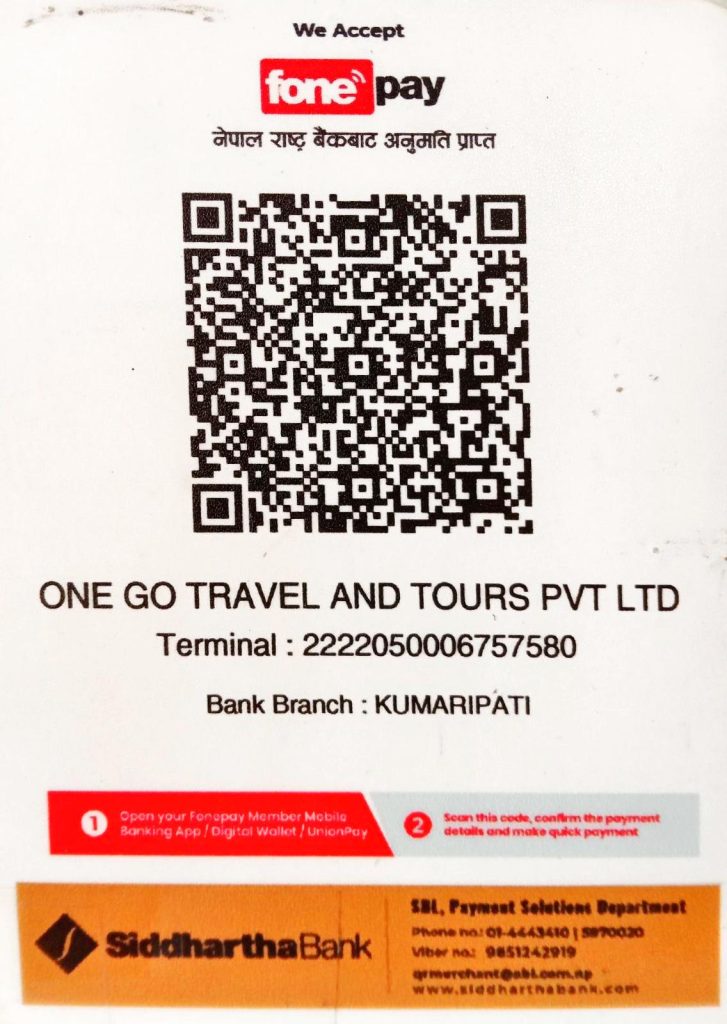 Contact Need to contact us? Use one of the options below. Our team are always happy to help. Email us Drop us an email and we’ll get back to you within 24hrs. Full Name Email Contact Number What's your Message? Submit Trip Queries Emergency Helpline +977 015908354 / 015906952 Contactable Hours Sun - Fri: 9AM to 5PM Require information about a trip? info@onegotravel.com.np Our bank details Please scan the QR code or refer the bank details below.Bank Name: Siddhartha BankAccount Name: One Go Travel and Tours Pvt LtdBranch: Kumaripati